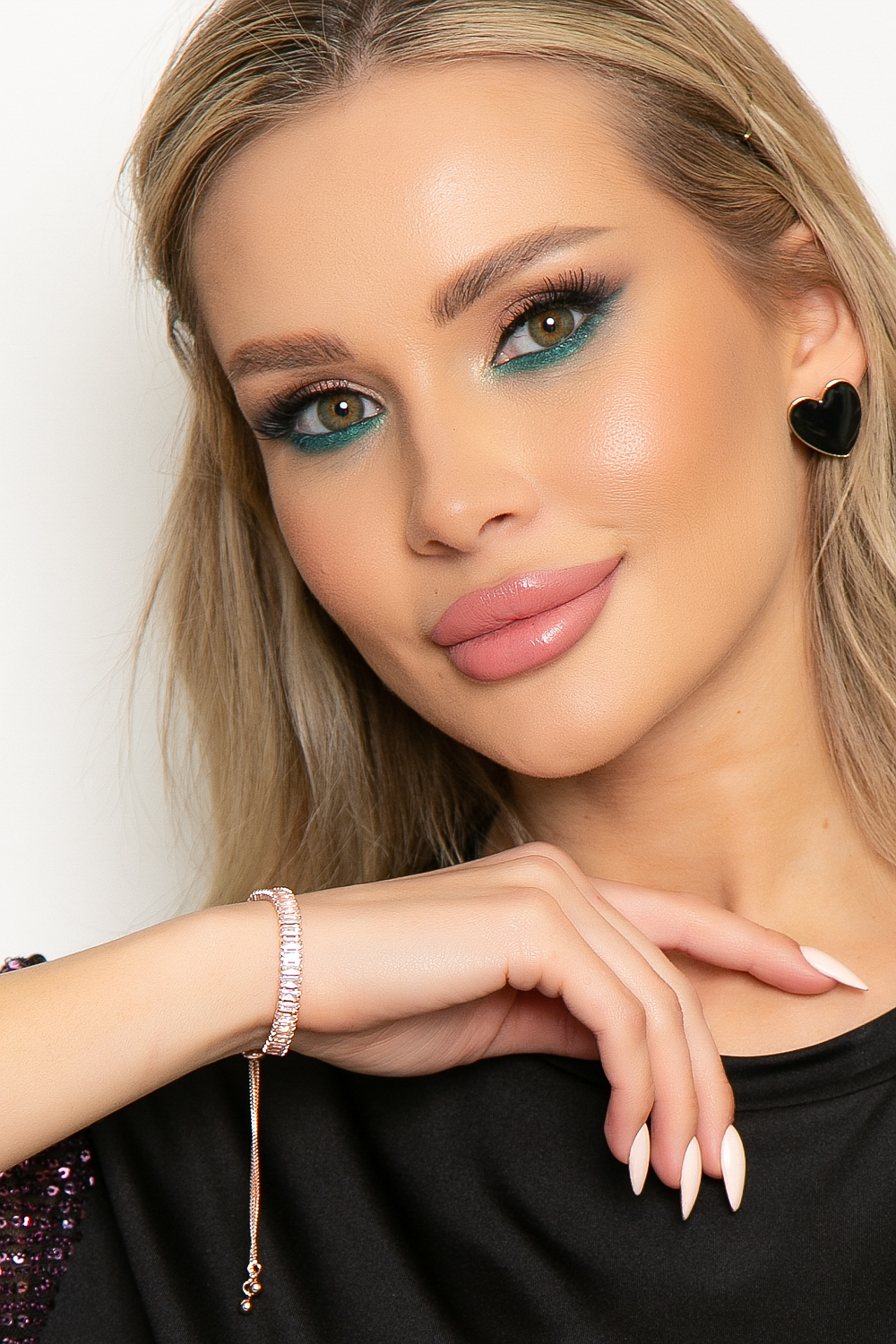 Нить прозрачных прямоугольных кристаллов дополнит Ваш вечерний образ.