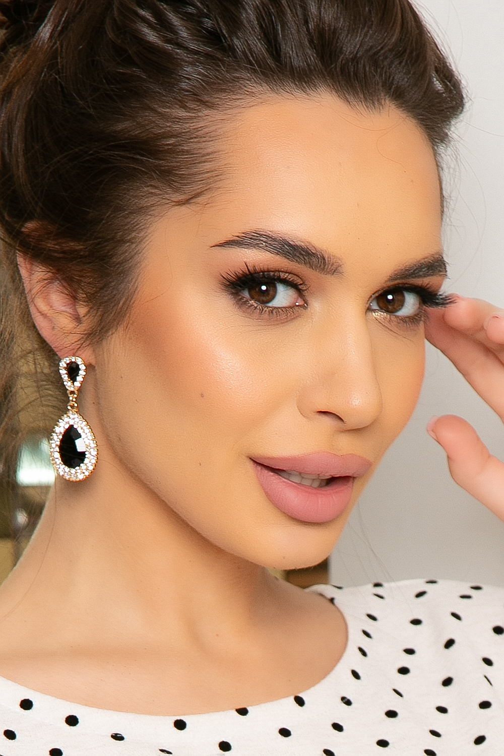 Серьги с камнями - это элегантный акцент вашего вечернего образа. Фома капли выглядит благородно и делает ваш образ утончённым. Камень обрамлён двумя рядами мерцающих кристаллов.