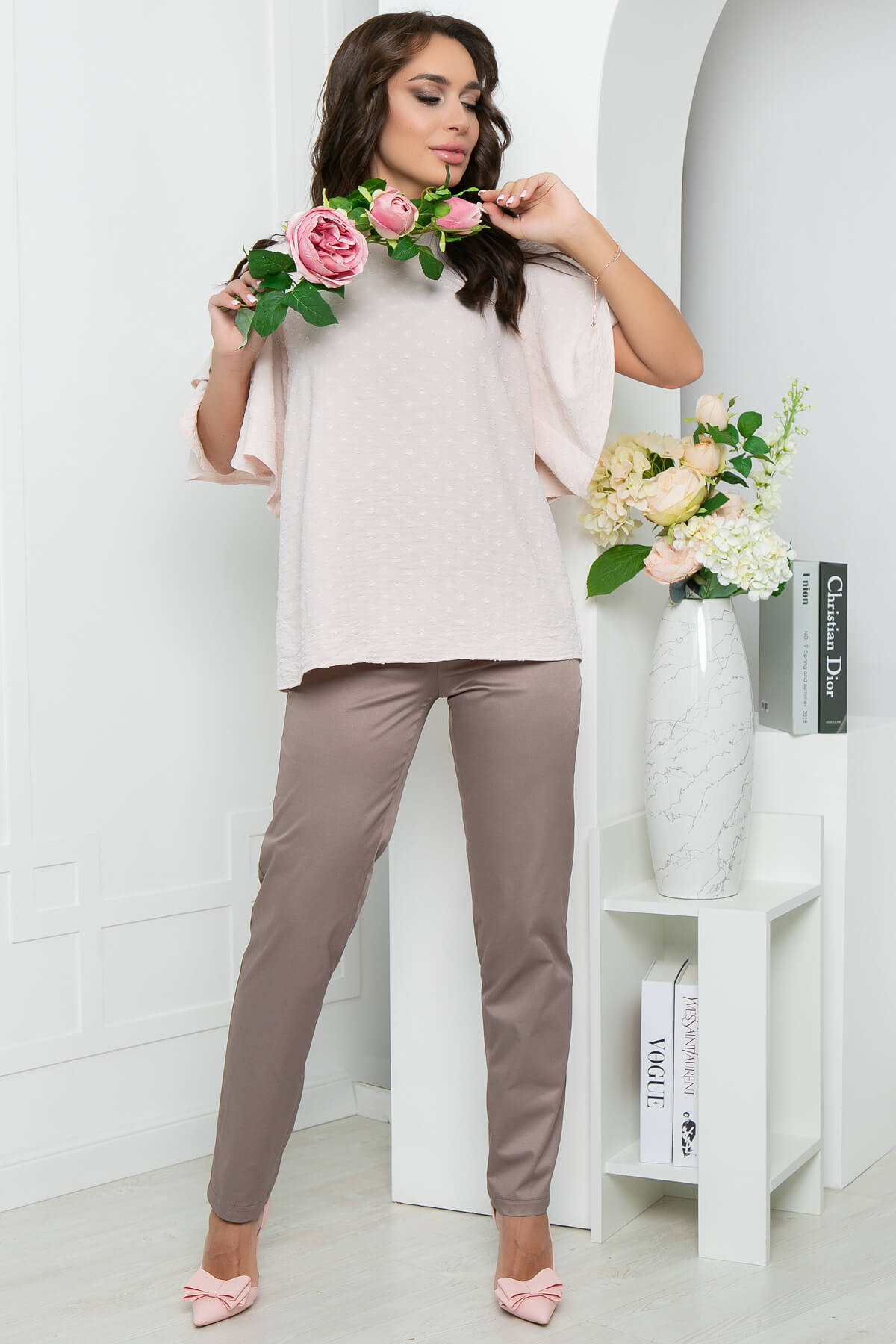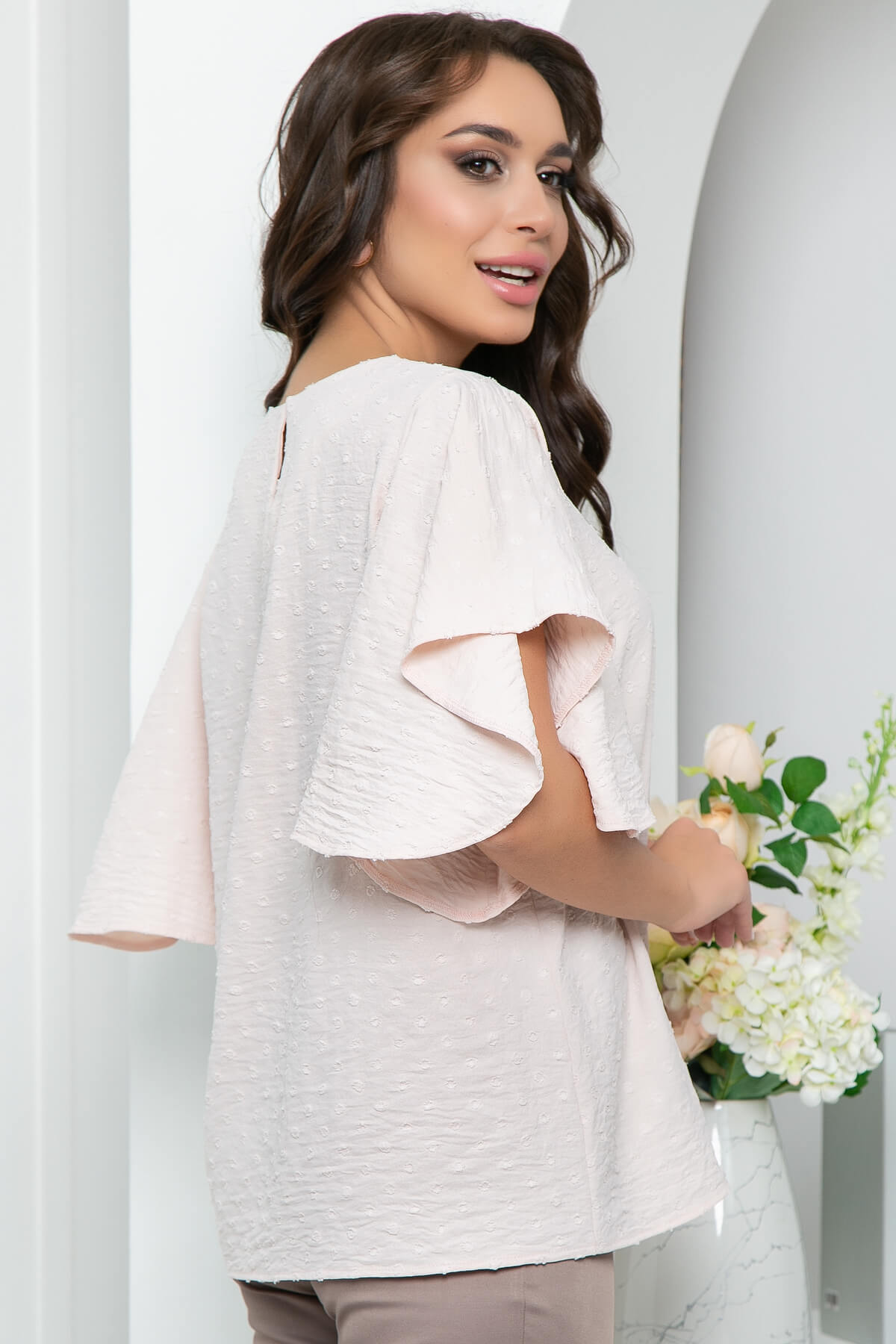 Блуза прямого кроя в красивом пудровом оттенке. Акцентной деталью являются летящие ниспадающие рукава, которые умело помогут замаскировать крупные предплечья и подчеркнут хрупкость. Данная модель комбинируется практически с любым низом, будь то брюки, юбка или летние шорты.