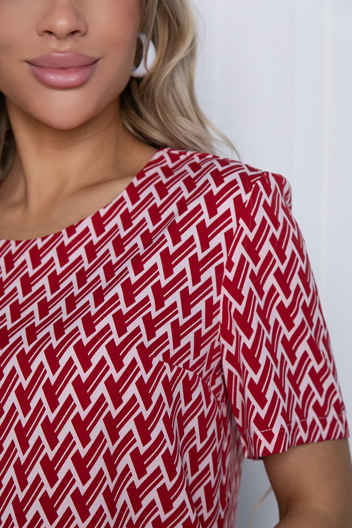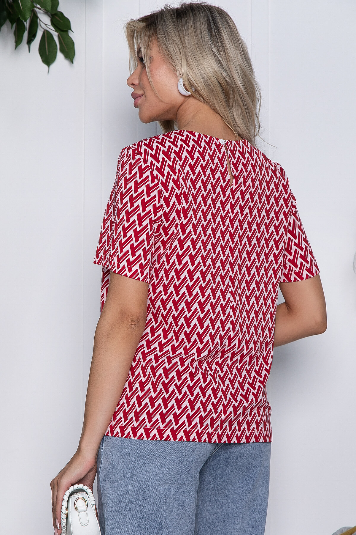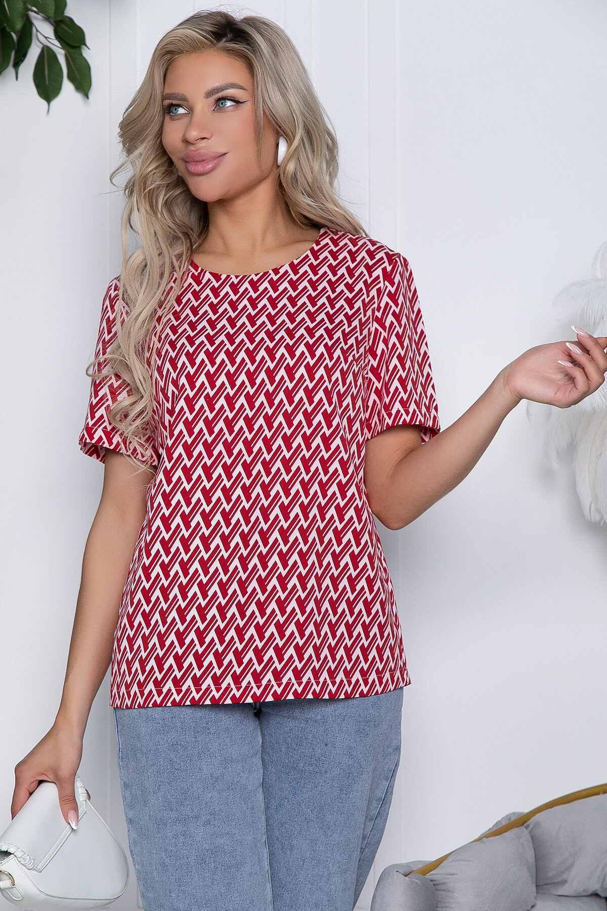 Лаконично и элегантно! Женская красная блузка с принтом и с короткими рукавами идеальна для лета.