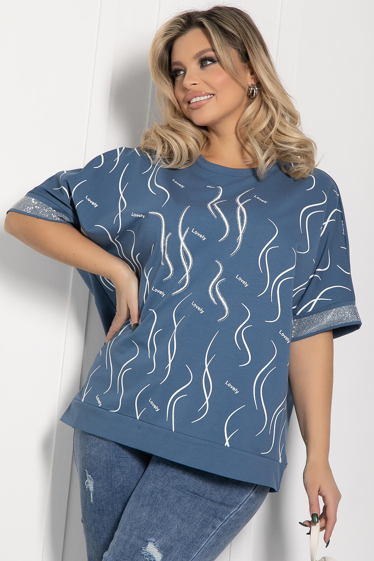 Оверсайз крой этой футболки создаёт ощущение комфорта и лёгкости, позволяя чувствовать себя уверенно в течение всего дня. Футболка украшена оригинальным принтом и дополнена стразами, что делает её поистине неповторимой.