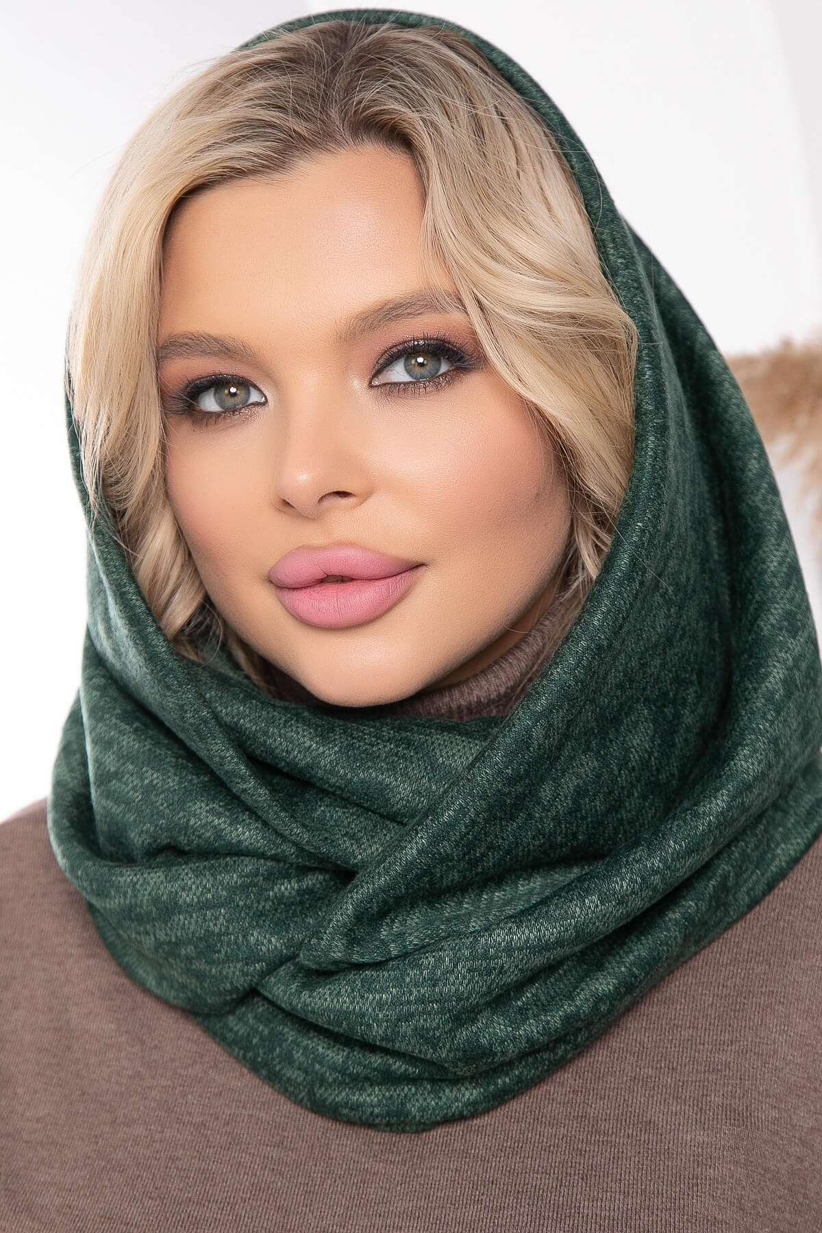 Гладкий и мягкий вязаный снуд легко драпируется в два оборота. Является альтернативой шапкам и капюшонам. Интересный оттенок снуда позволяет сочетать его практически с любым цветом верхней одежды.
