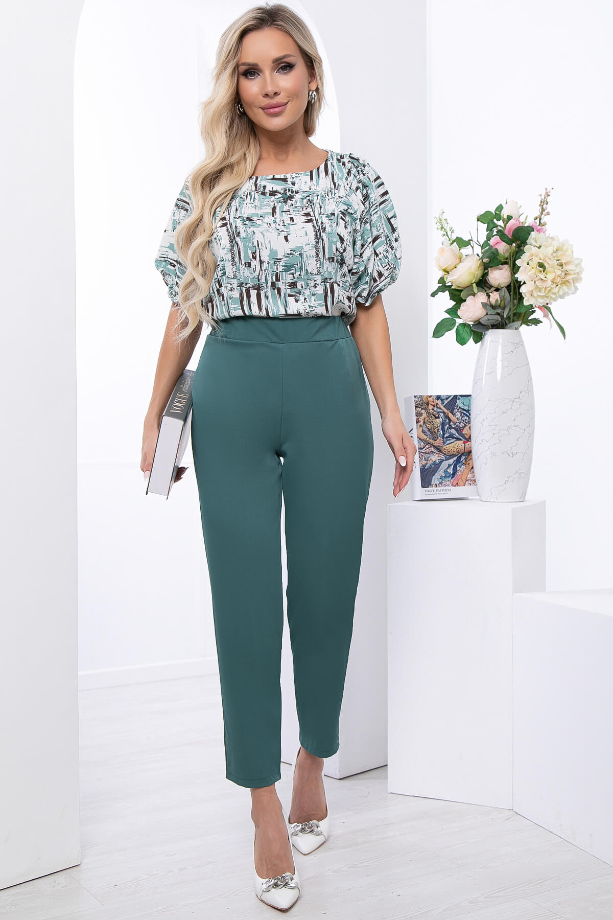 Элегантный костюм, состоящий из брюк с высокой посадкой на резинке и блузы свободного кроя с акцентными рукавами. Очень женственный комплект с милым флористическим принтом. Блуза свободного кроя, округлый вырез горловины, рукав три четверти, втачной, по форме напоминает "фонарик".