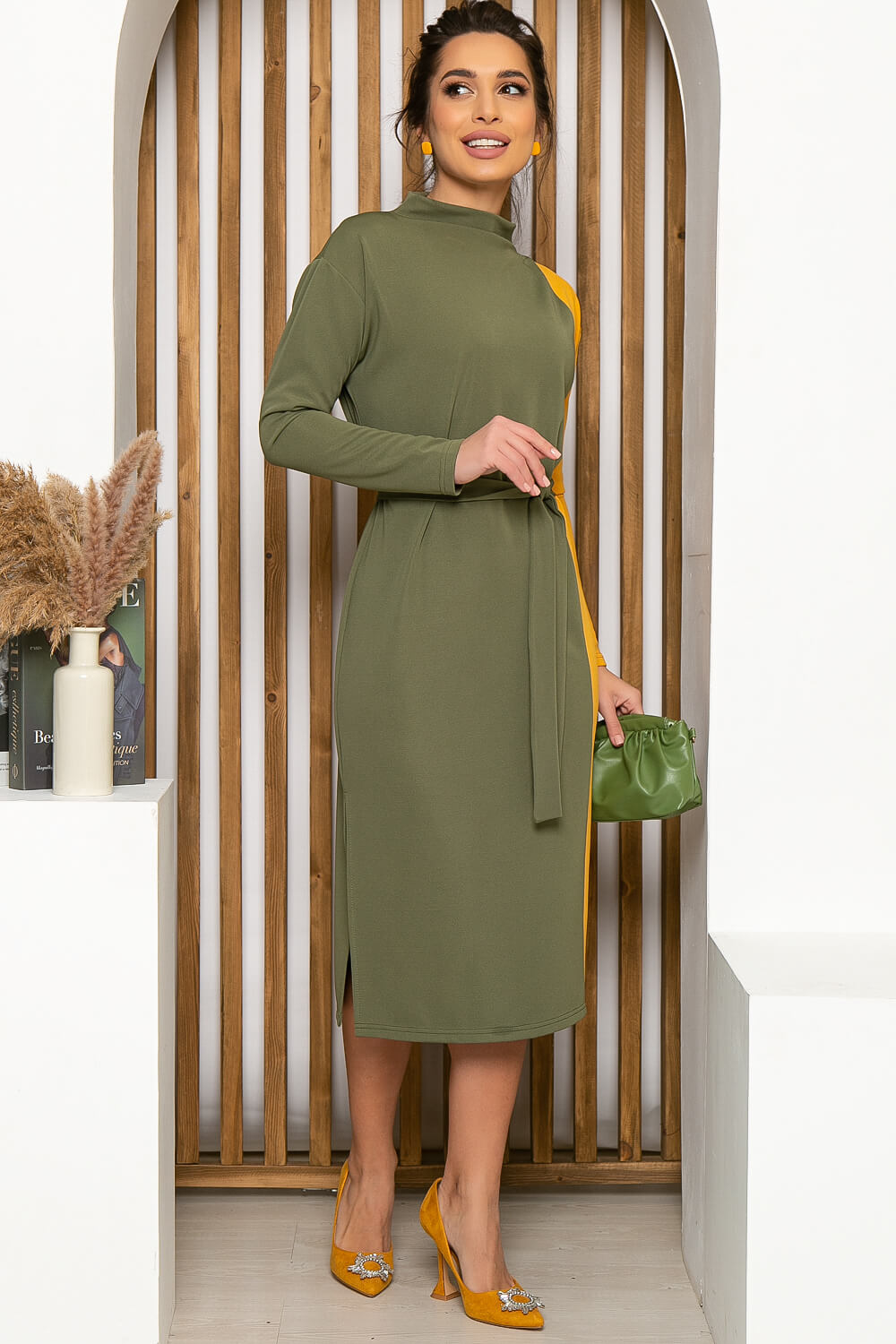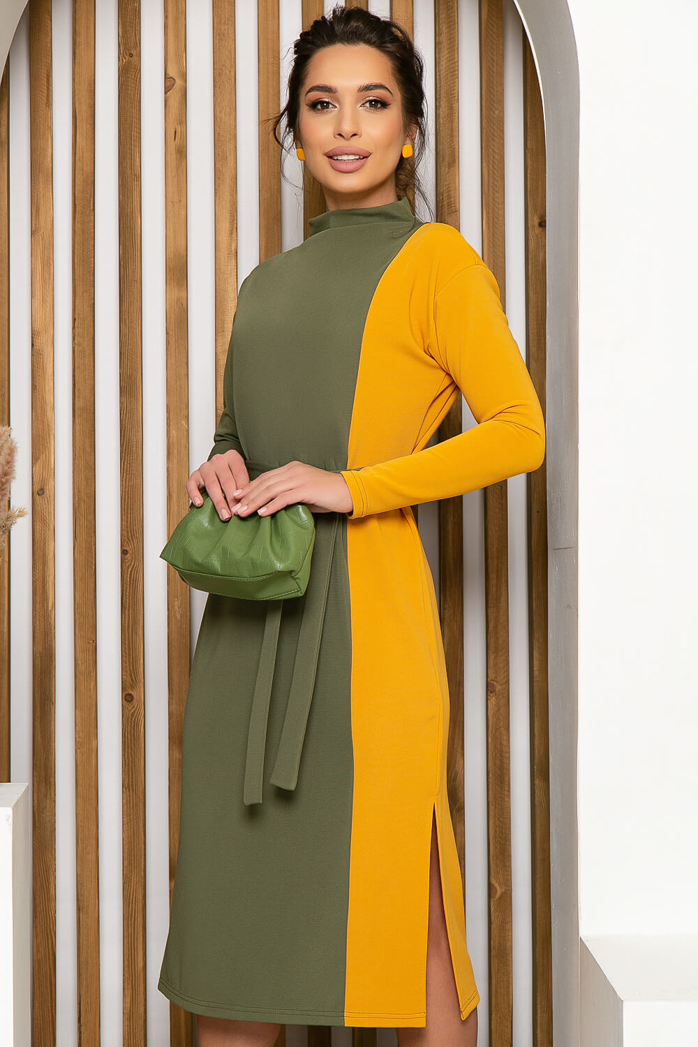 Добавляем яркости повседневным образам! Невероятно удобное платье прямого кроя на каждый день в трендовом цветовом сочетании. Прекрасно подойдёт для любого сезона. Комфортный длинный рукав, горловина - цельнокроеная стойка. По бокам платье оснащено разрезами. В комплект входит пояс из основной ткани.