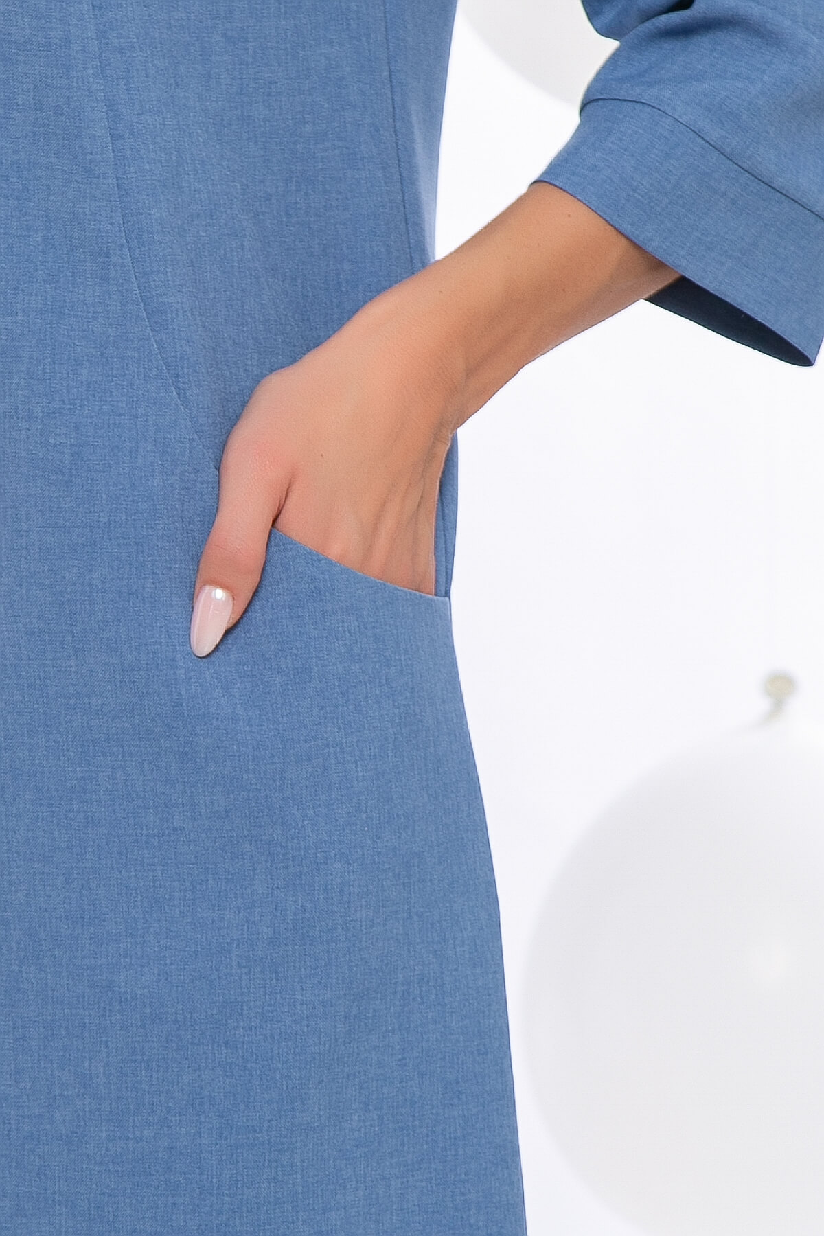 Элегантное платье в деловом стиле. Модель имеет лаконичный дизайн и комфортный силуэт, чтобы в офисе или на деловой встрече в нём было комфортно. Рукав втачной, три четверти. Вырез представлен с интересным дополнением, что придаст образу кокетства.