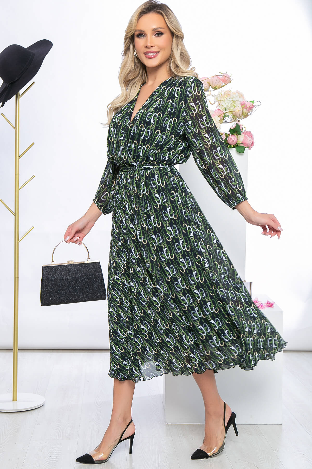 Платье из шифона с оригинальным принтом придаст вам привлекательный вид и создаст прекрасное настроение. Нежная и струящаяся фактура ткани выгодно подчеркнет достоинства фигуры, а пояс из основной ткани сделает акцент на талии.