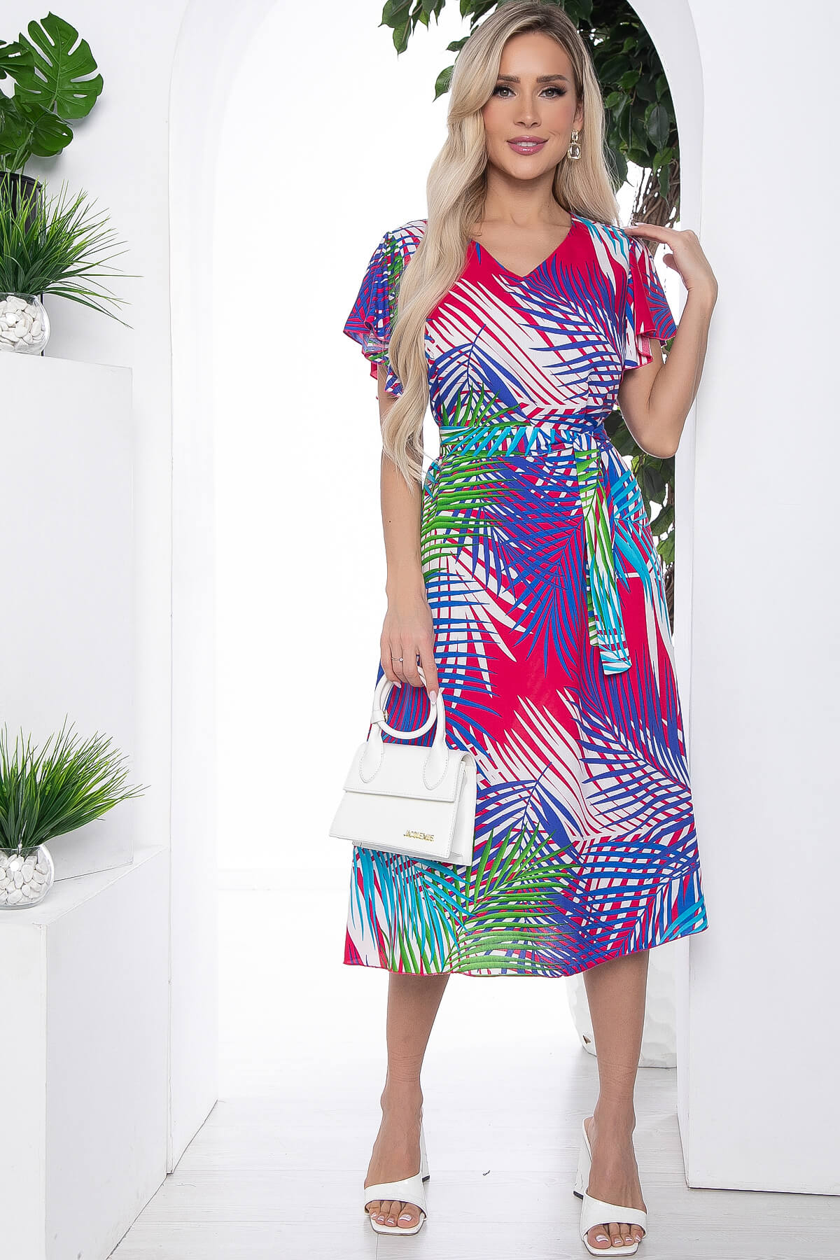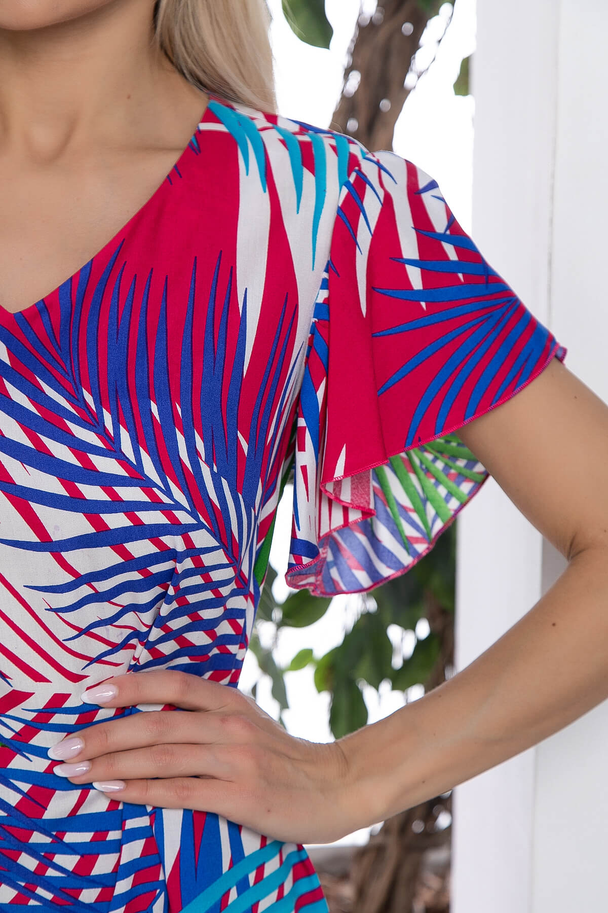 Идеальное платье, для жаркой погоды, в котором вы будете чувствовать себя комфортно. В комплект входит пояс из основной ткани, который подчеркивает все достоинства фигуры. Рукав скроен по типу "крылышко".