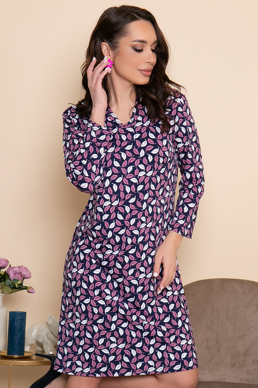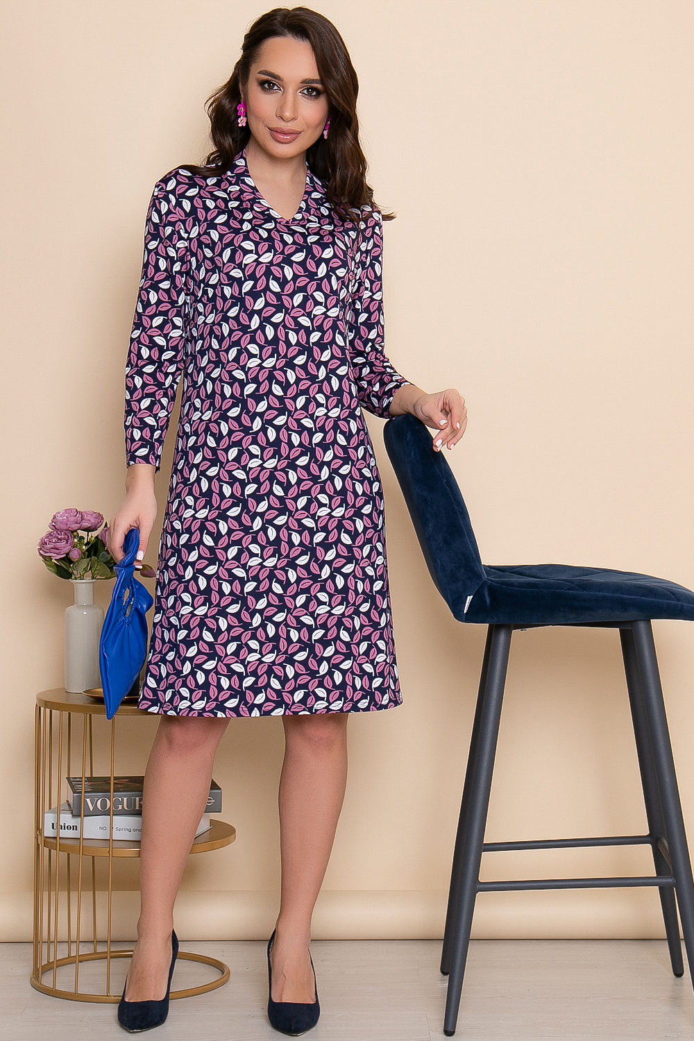 Трикотажное платье с ярким весенним принтом идеально подойдет на каждый день. Платье полуприлегающего силуэта, из приятной к телу ткани. Полуприлегающий силуэт, рукав втачной, удлиненный 7/8. Элегантный шалевый воротничок с мягким V-образным вырезом красиво подчеркнет ключицы и линию шеи.