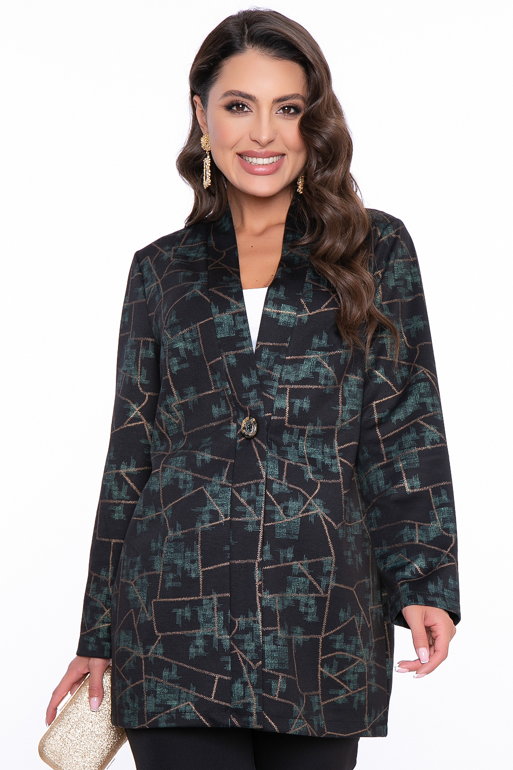 - Принт: изумрудно-золотая абстракция;