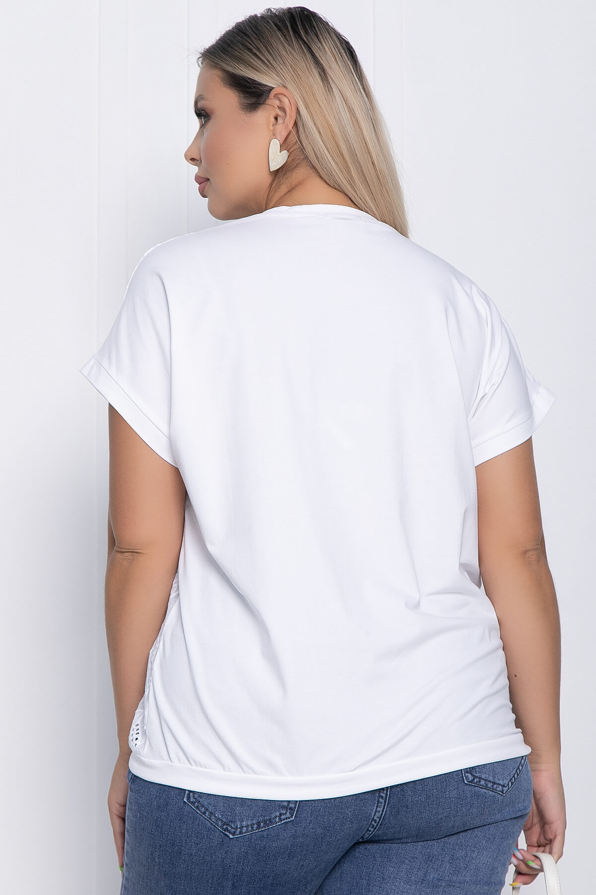 Блузка с коротким рукавом и прямого силуэта идеальна для создания легких и стильных образов! Можете носить ее самостоятельно или сочетать с различными аксессуарами, чтобы создать свой уникальный образ. По низу изделия кулиска, с помощью которой удобно регулировать ширину: сделать блузку более просторной и свободной или же, наоборот, стянуть, тем самым подчеркнуть фигуру.