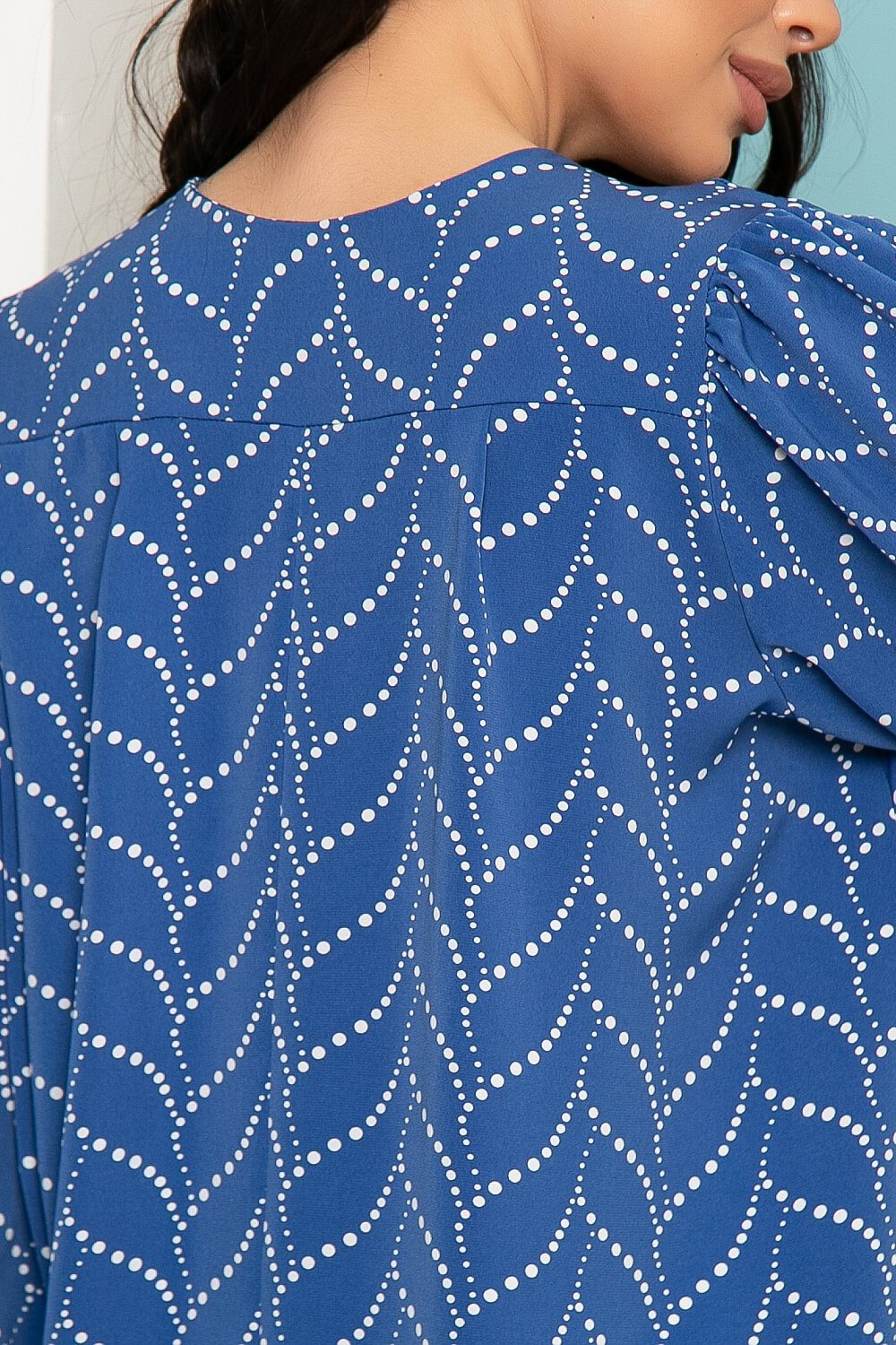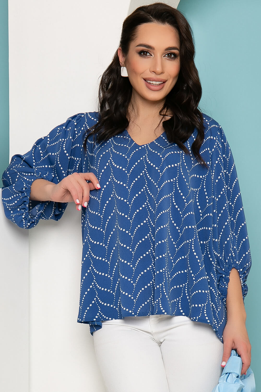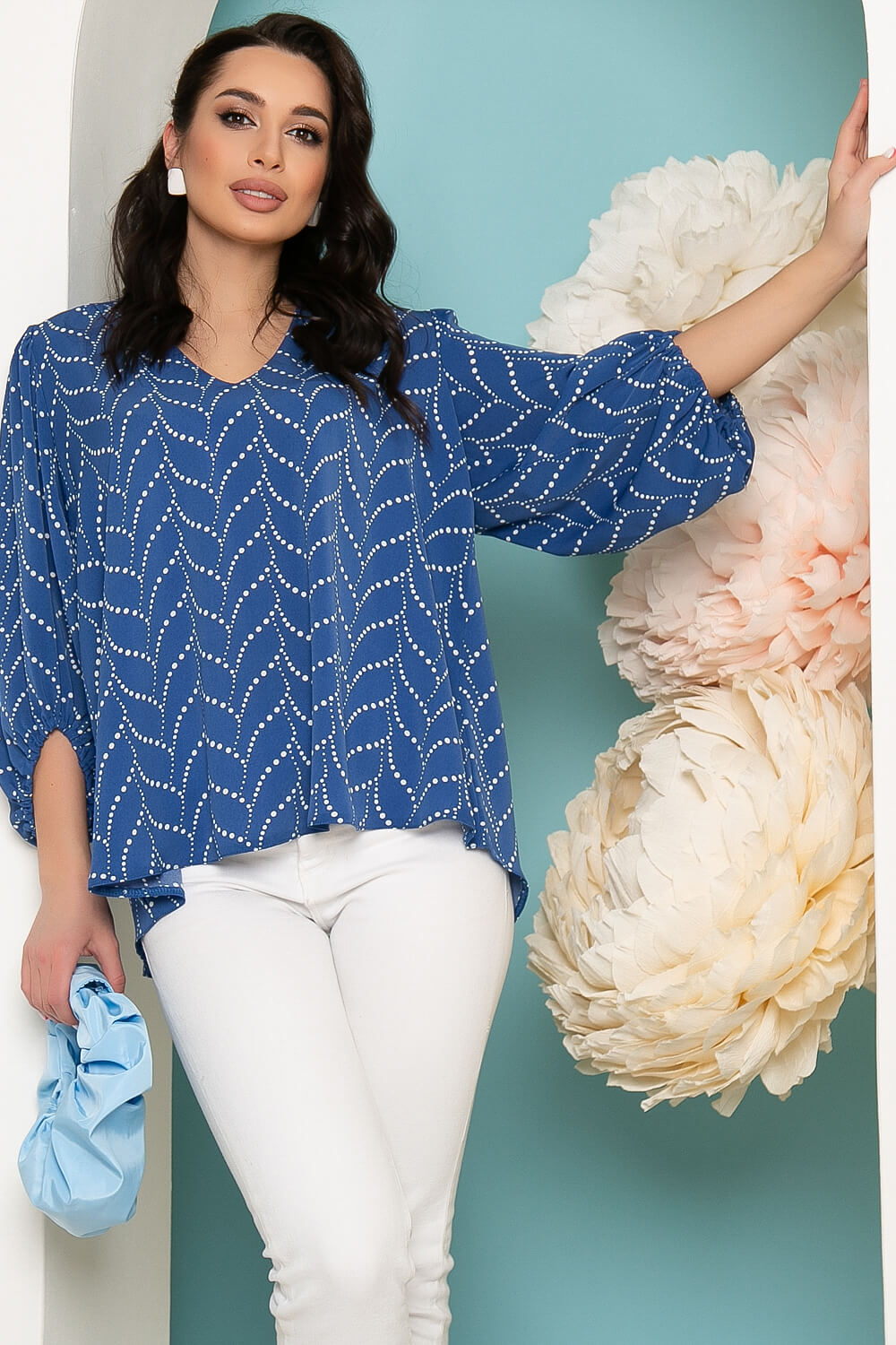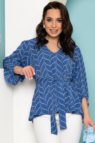 Шикарная блуза в которой от Вас не смогут отвести восхищенных взглядов! Блуза свободного силуэта. Мягкий V-образный вырез горловины. Интересного кроя рукав - втачной, три четверти, верх присборен, объемный, низ рукава асимметричный на резинке. По спинке отрезная кокетка и декоративные защипы, спинка удлинена. В комплекте пояс, который можно завязать на узел или же оформить в красивый бант.