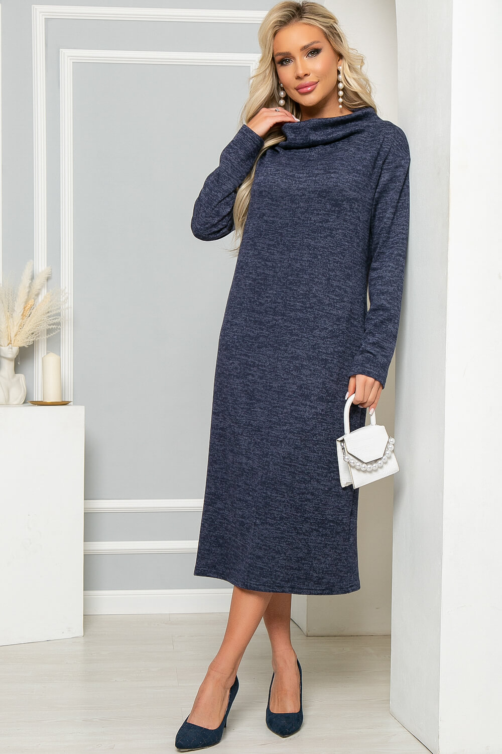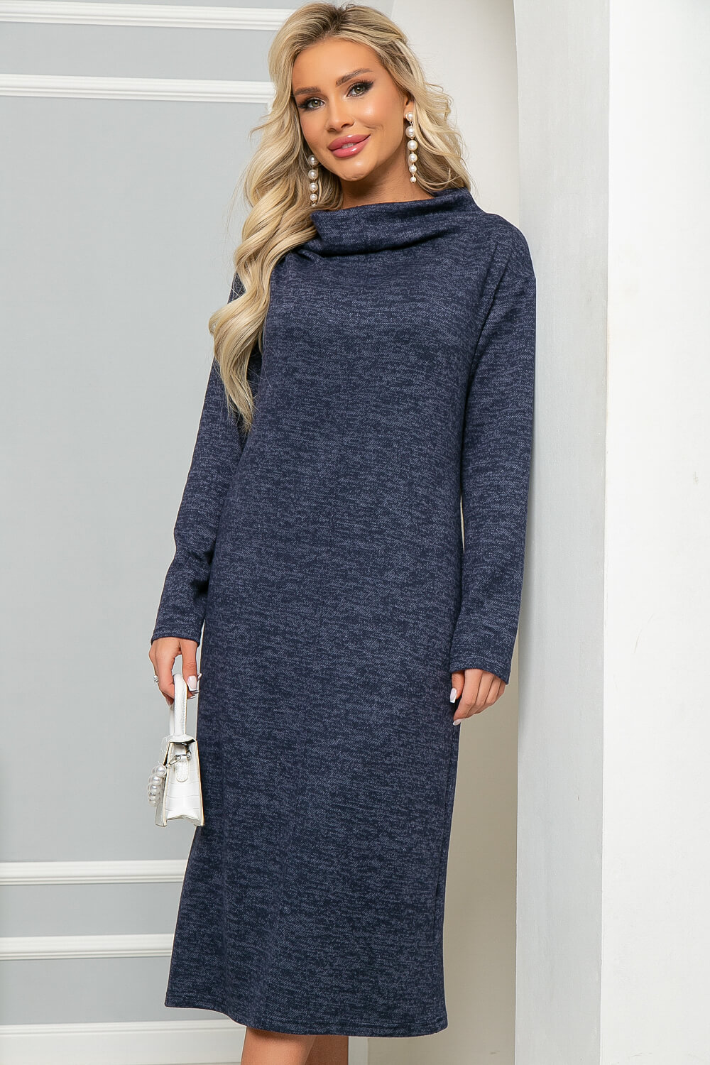 Платье из уютного и мягкого трикотажа "Ангора" с уютным объёмным воротом подарит тепло и комфорт в прохладный период. Лаконичное платье средней длины подойдёт для создания повседневного образа, по передней части платья выполнена вертикальная отстрочка. Отлично сидит по фигуре, подчёркивая женственные формы.