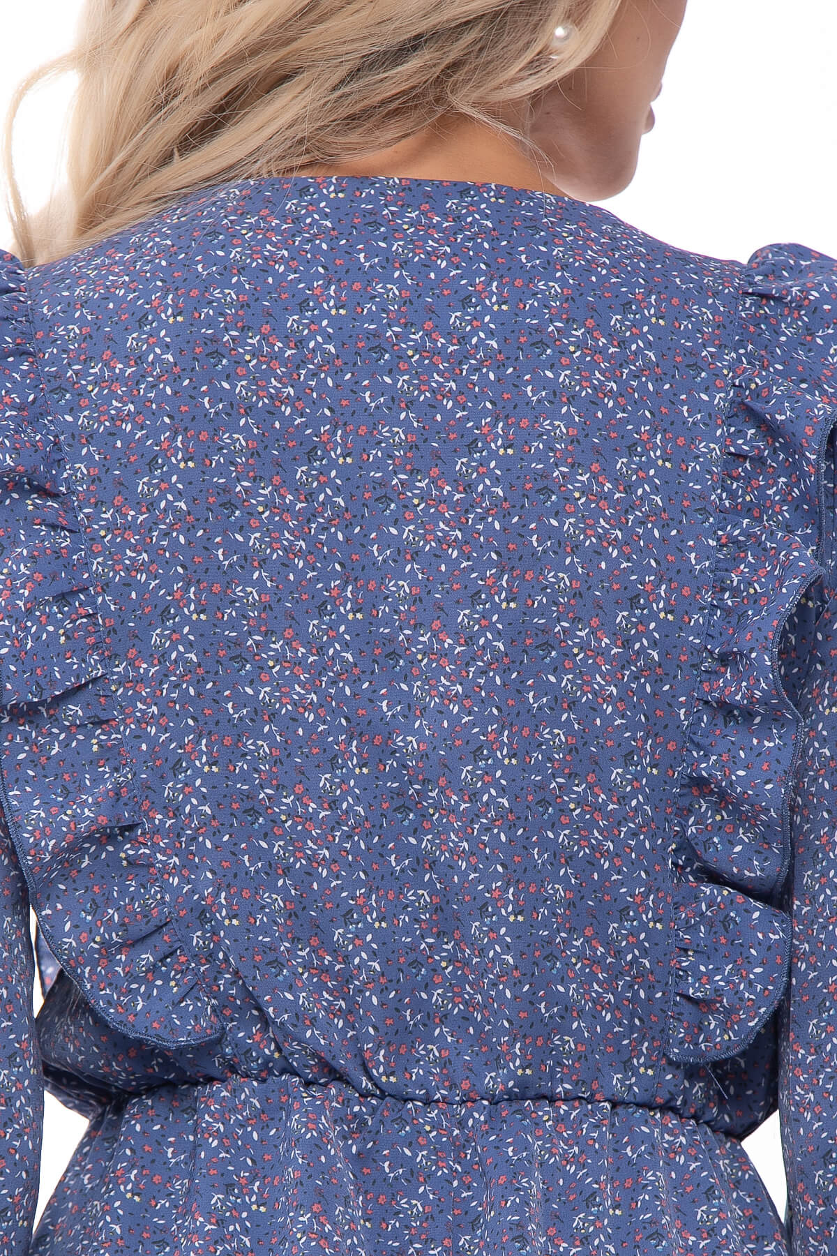 Летящее женственное платье украсит Ваш образ на прогулке или неформальной встрече. Такая модель платья хороша тем, что актуальна круглый год, а также выглядит женственно и элегантно. Платье свободного кроя, рукав втачной, длинный, на резинке. Изделие украшают рюши по переду. Талия на резинке.