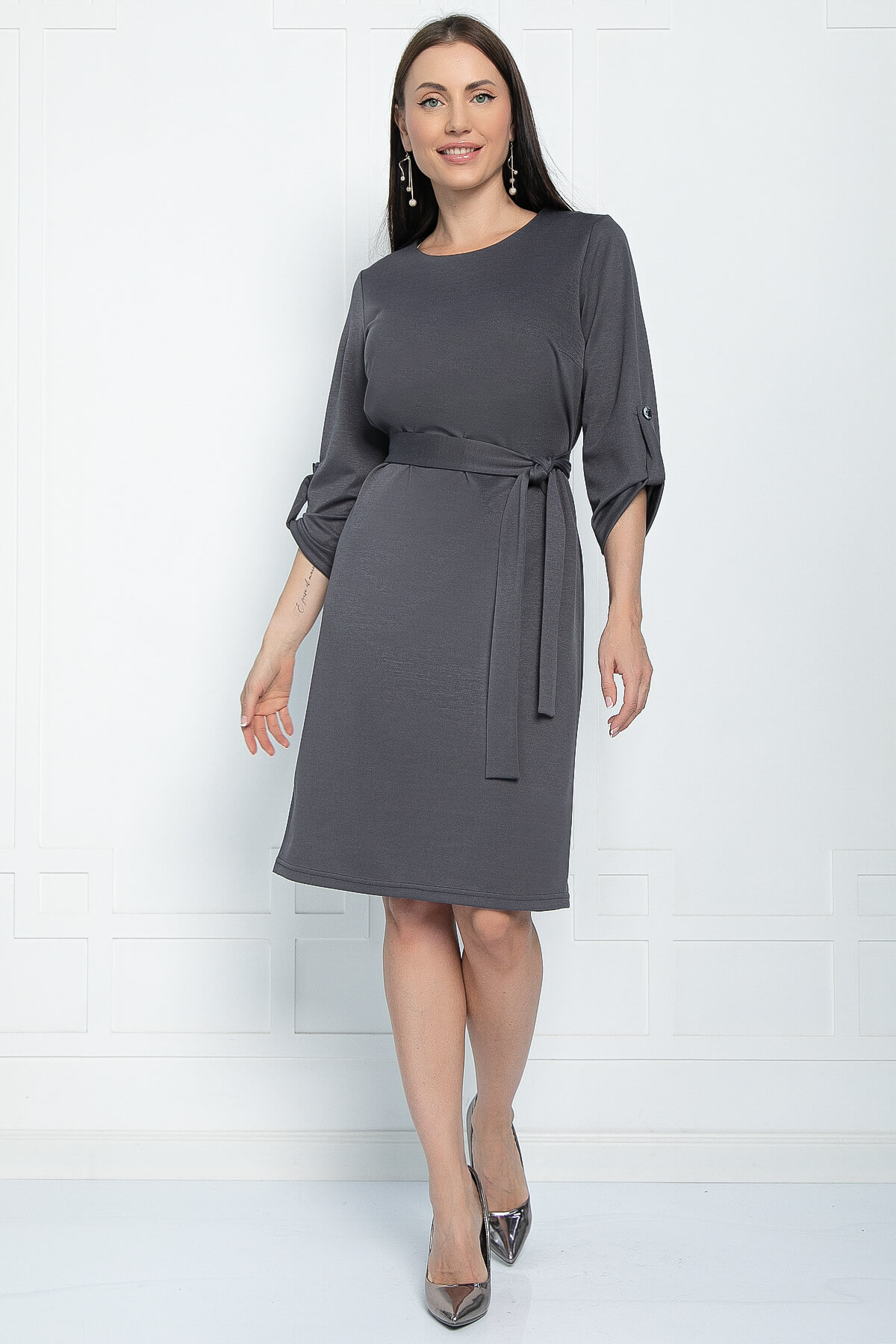 Базовое платье — это модель, которая сочетает в себе стиль и комфорт. Его рукав украшен декоративной патой, что придаёт ему особый шарм. Такое платье можно носить с любой обувью, оно универсально. А пояс из основной ткани изящно подчеркнёт вашу талию, сделав образ ещё более женственным.