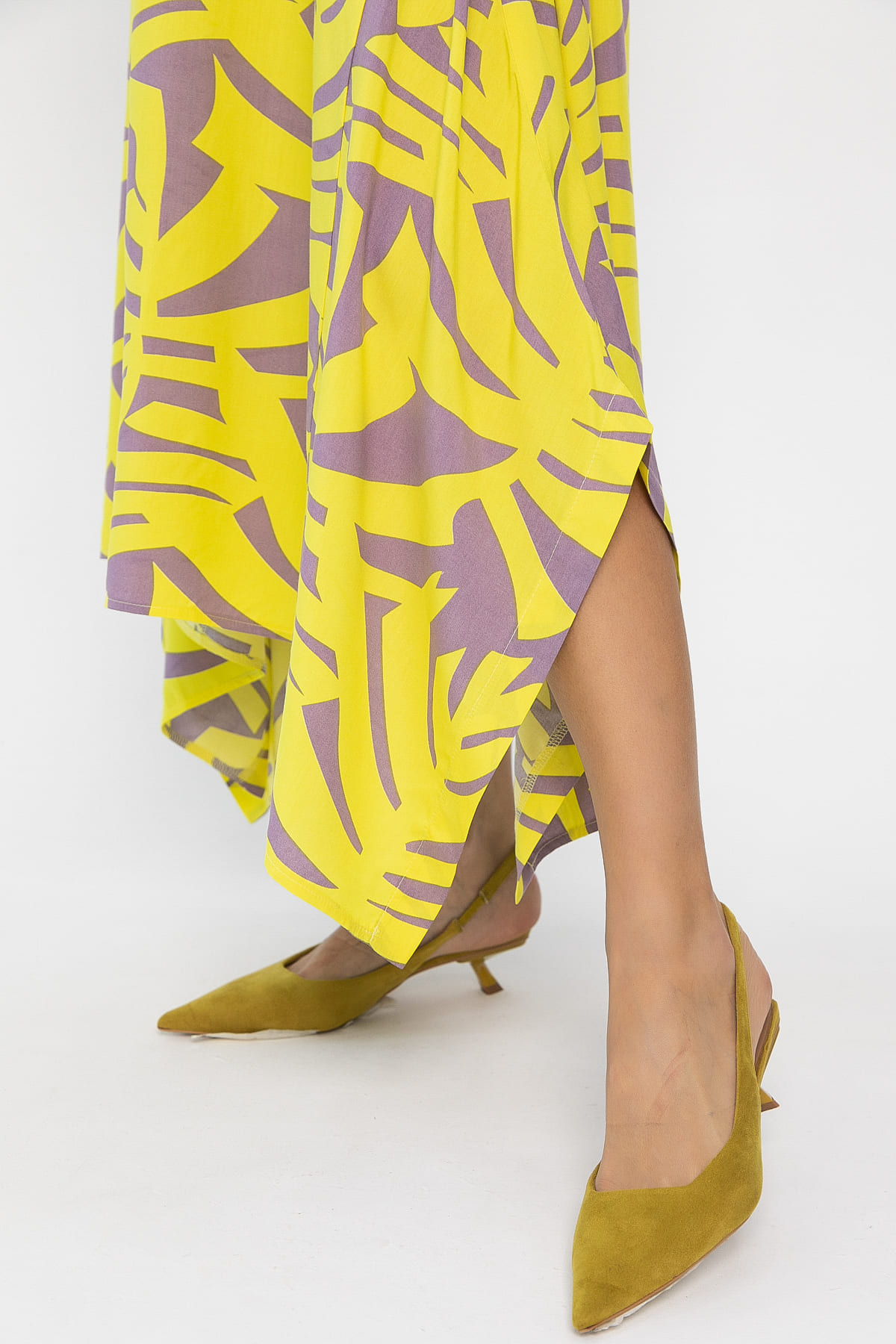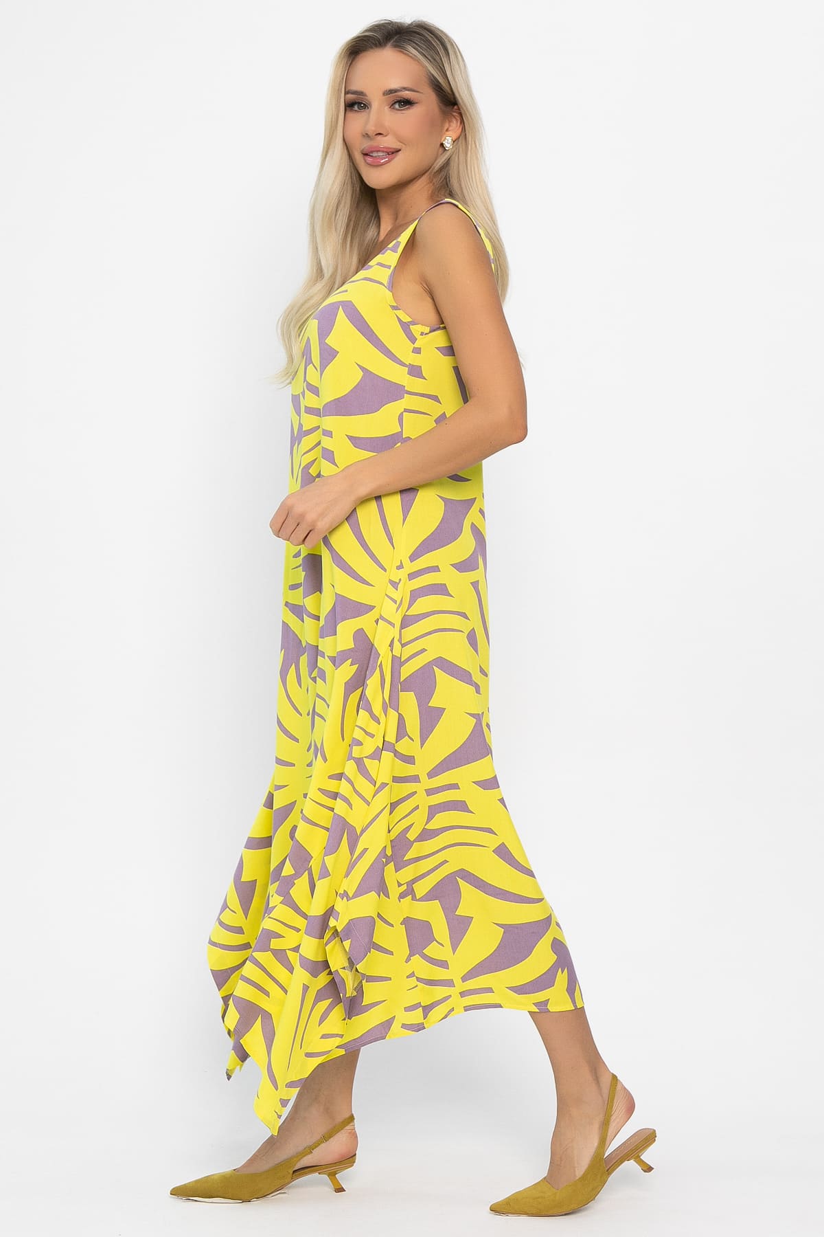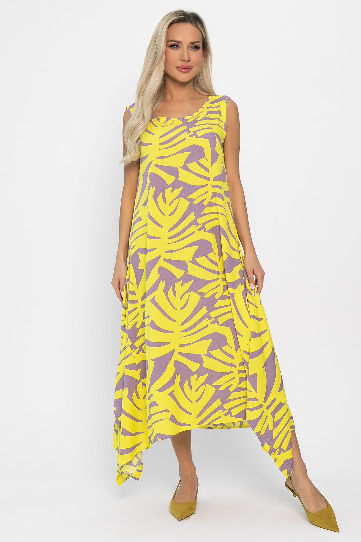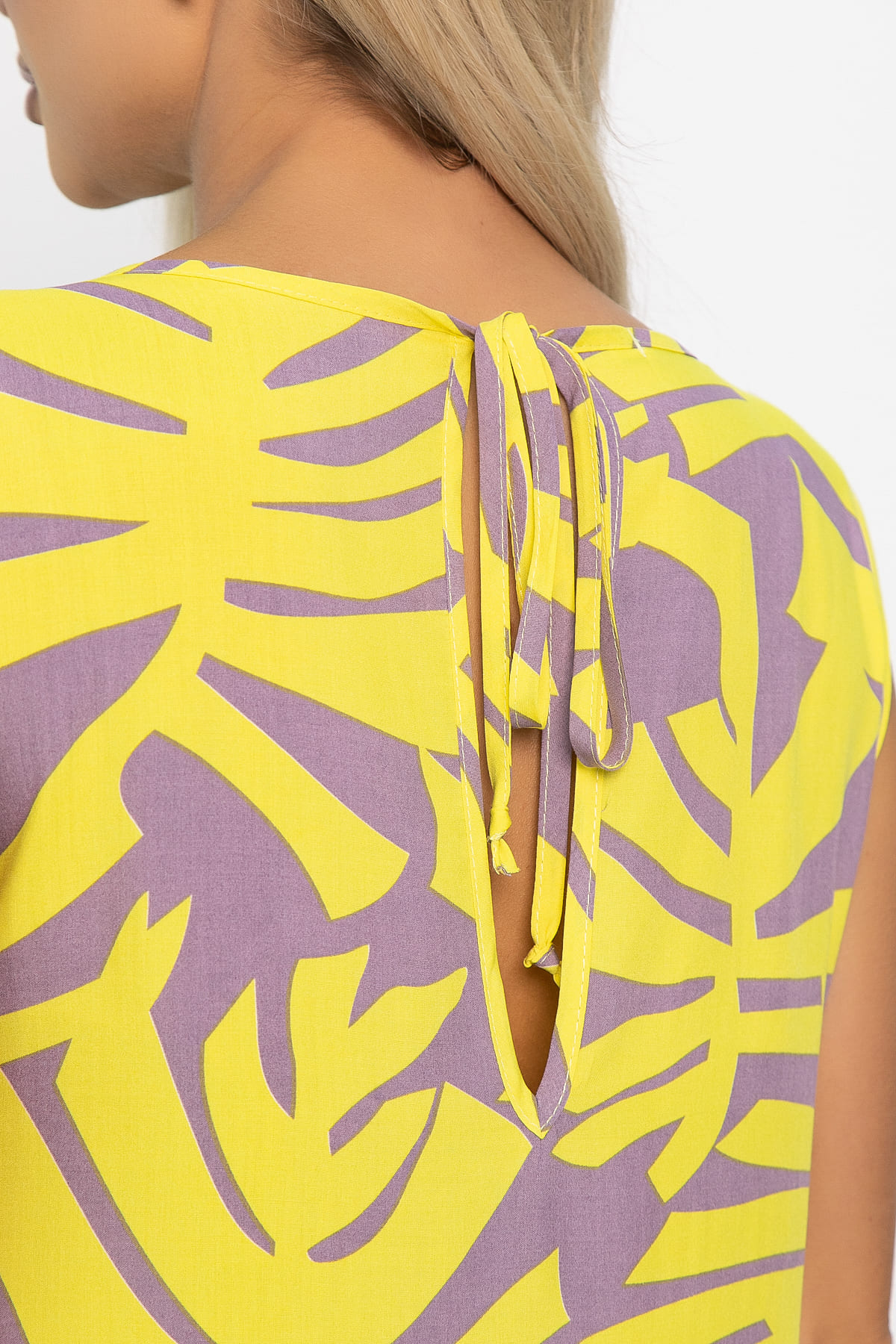 Стильный сарафан свободного кроя. Модель с круглым вырезом горловины и оригинальным вырезом на спинке, украшенным завязками для дополнительного акцента. Низ сарафана выполнен клиньями, что создает легкую и воздушную силуэтную линию. Универсальность сарафана позволяет использовать его в самых разных образах: поездка на пляж, встреча с подругами или обычных поход по делам.