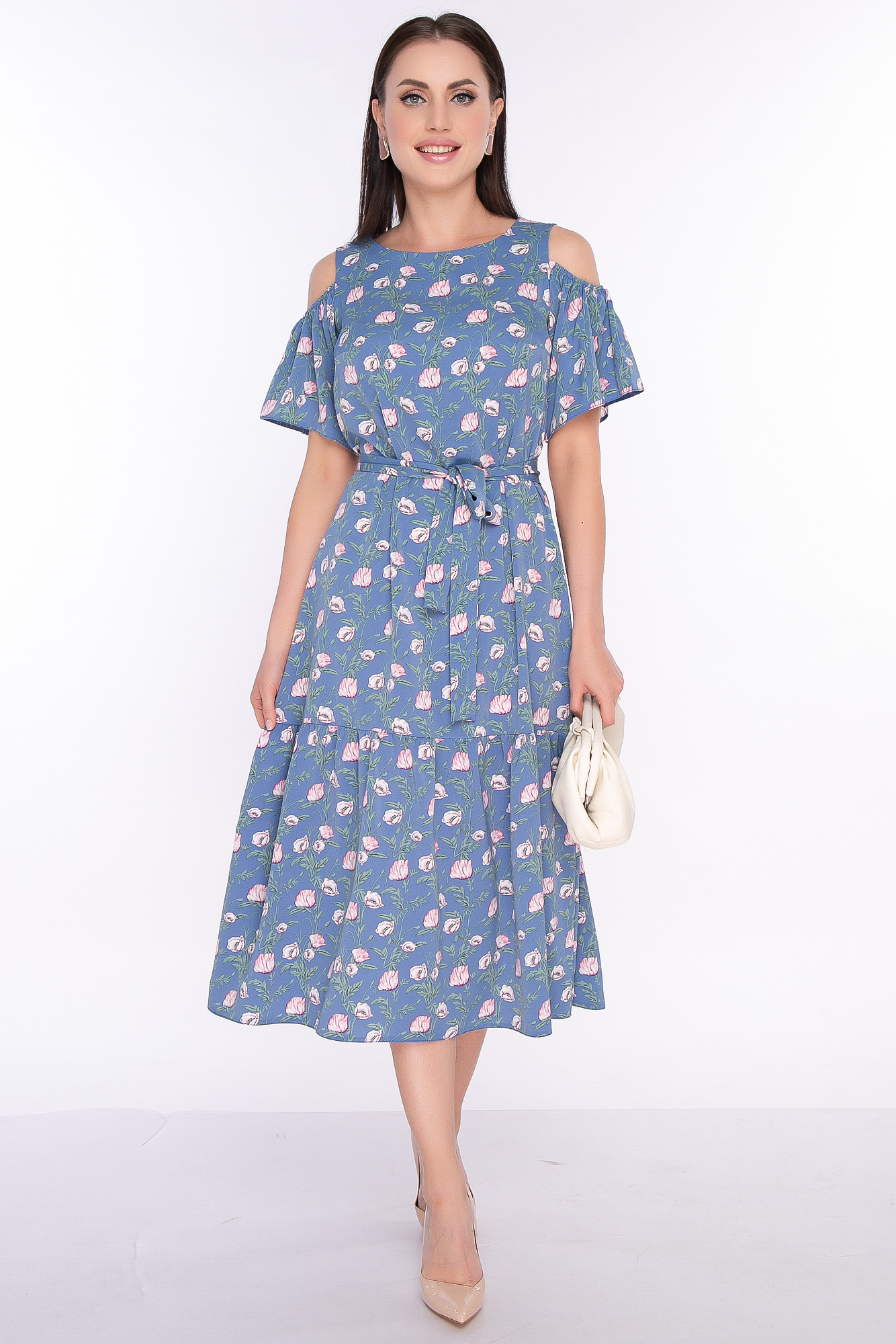 Элегантное платье свободного кроя прекрасно дополнит Вашу летнюю капсулу. Шикарная свободная юбка, с широким воланом добавляет романтичности образу. Женственный летящий короткий рукав с открытым плечом. В комплекте идёт поясок.