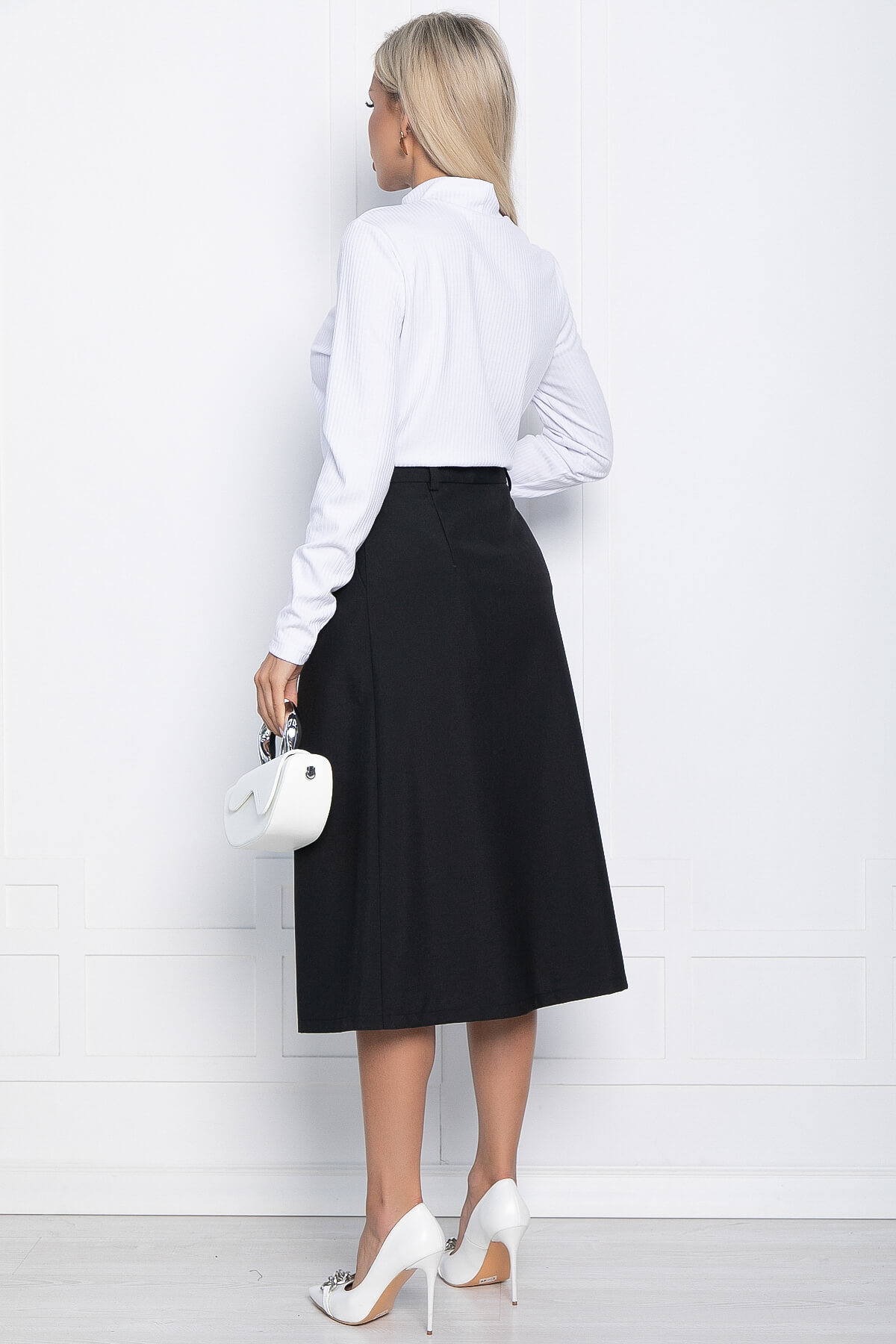 Эта элегантная юбка длиной миди станет идеальным выбором для любого случая и сезона! Ее универсальный стиль позволяет носить ее как в офисе, так и на свидание или прогулку. Уникальная расширенная форма и две глубокие складки спереди придают юбке особый шарм и женственность. Модель легко сочетается с различными блузками и обувью, позволяя создавать стильные образы для любого повода. Выразите свою индивидуальность и подчеркните свой вкус с этой модной и стильной юбкой!